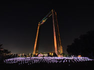 At the same time, the dense arrangement of vertical elements evokes wheat fields and cultivated landscapes, introducing an additional layer of meaning related to growth, abundance, and collective prosperity. The light poles form a responsive field, lightly leaning and swaying with wind and human presence, reinforcing the sense of a living system rather than a static object.